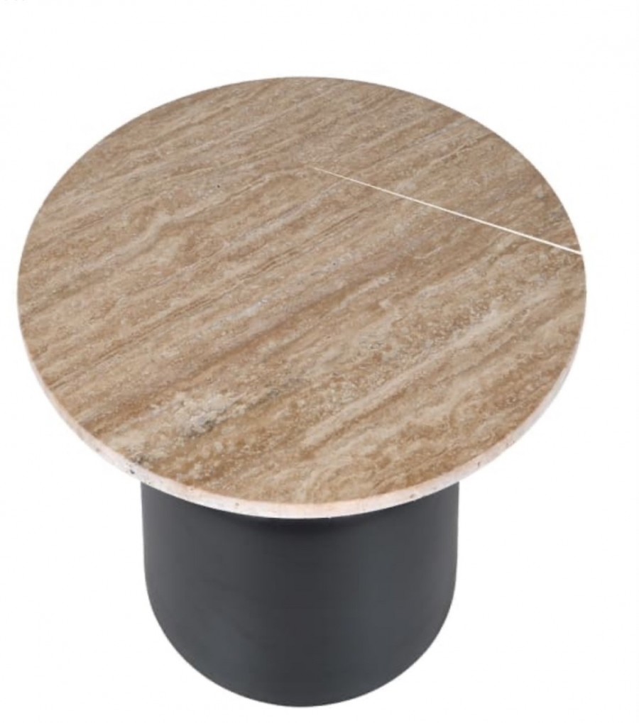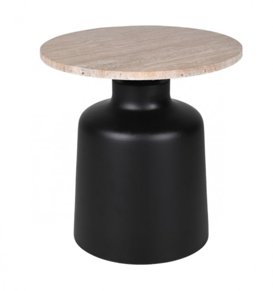 Andora Occasional Side Table / Premium marble round top / Metal drum base / Manufactured from aluminium with a black painted finish / Hand crafted / Ideal for all hotel lobby areas, cocktail bars or high end guest room suites