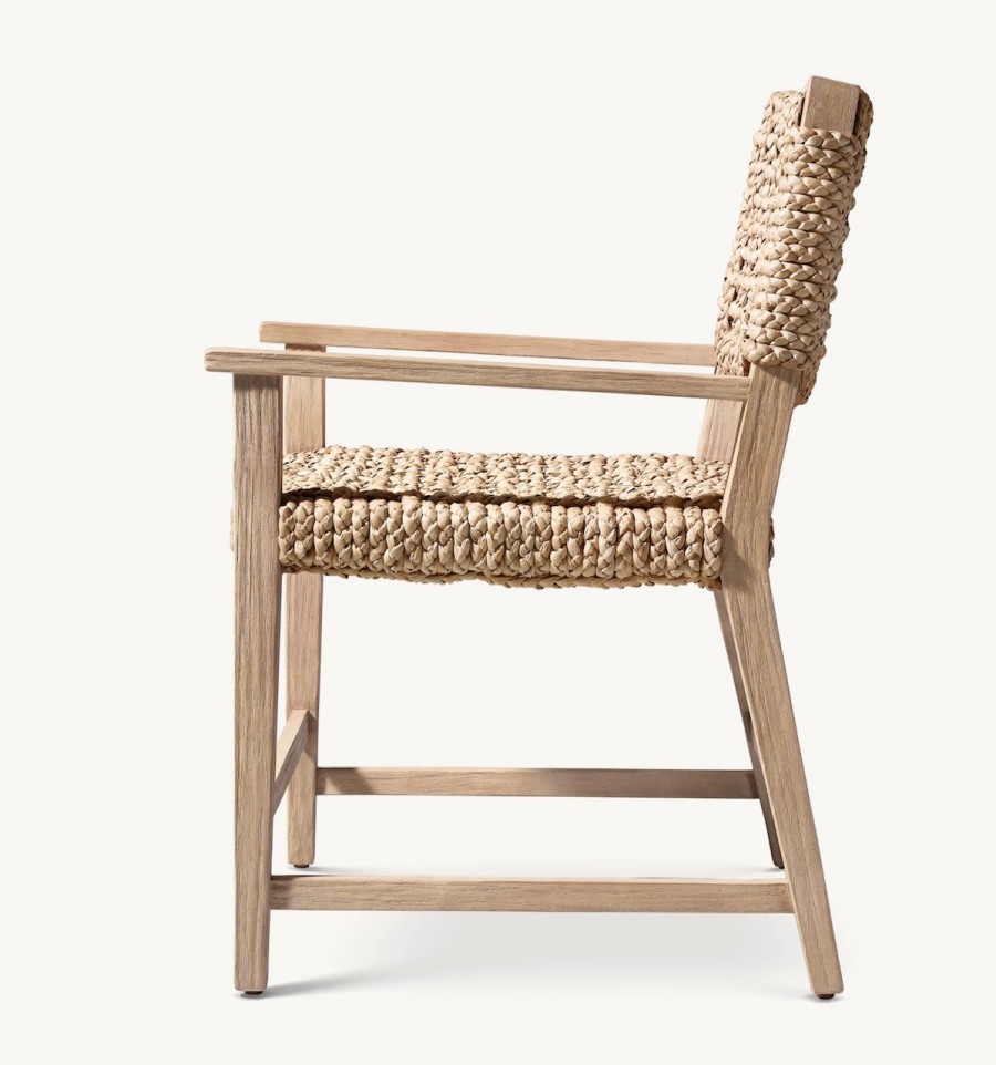 Rubio Arm Chair / With Integrated Arms / Solid mahogany frame available in two finishes / Seat and back in hand woven sea grass for premium quality in a choice of color finishes / Braced all around for heavy contract use / Tapered wooden legs / Upcharge for removable seat cushion for added comfort / Fabric colors, on request / Ideal for all restaurants, hotels and dining applications.