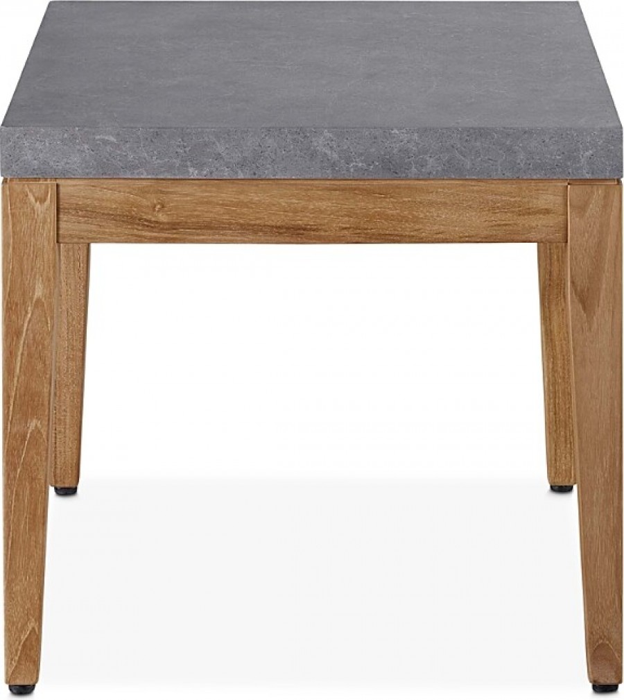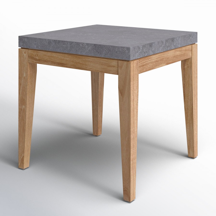 Sunset cocktail tables / Available in 2 sizes / Natural teak tapered wooden legs on glides / Concrete dark grey top for all year around outdoor use / Ideal for all outdoor areas including hotels, restaurants, steak houses and country clubs.